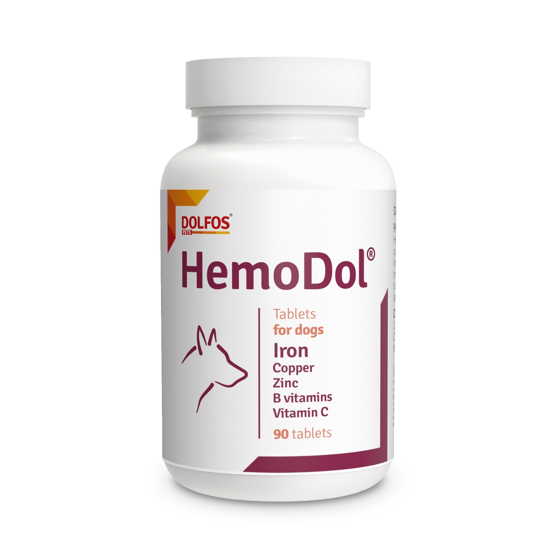 HemoDol aims to balance the Iron requirements in dogs. HemoDol plays an important role to maintain normal Hemoglobin formation, red blood cells, level of oxygen in body cells, muscle functions, energy and to support the immune system.