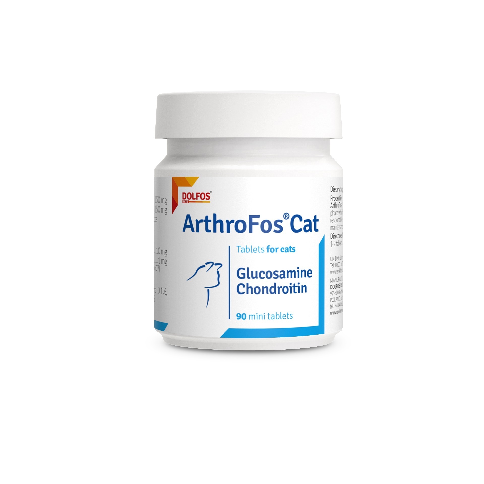 ArthroFos Cat contains chondroitin sulphate and glucosamine sulphate which are essential elements of the synovial fluid and cartilage responsible for proper joint nutrition. Manganese contributes to the maintenance of normal bones and normal cartilage connective tissue.