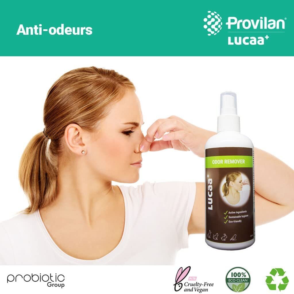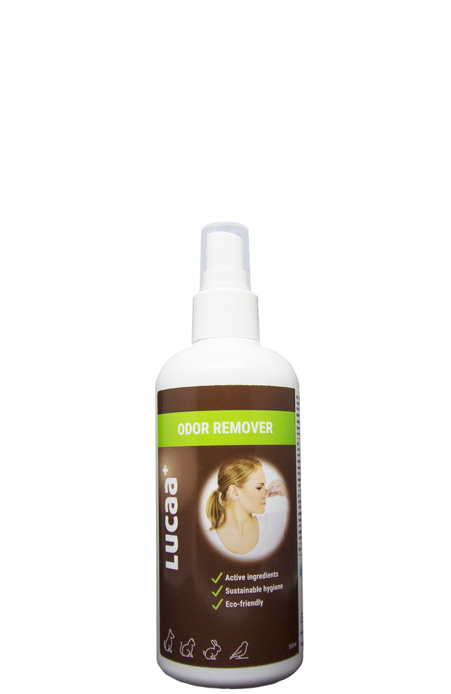 LUCAA+ Pet Odour Remover Unlike chemical air fresheners, LUCAA+ Pet Odour Remover is safe and chemical-free. The spray is eco-friendly, is quickly biodegradable, does not contain any dyes and will not stain. It has a pleasant, natural Aloe Vera aroma.